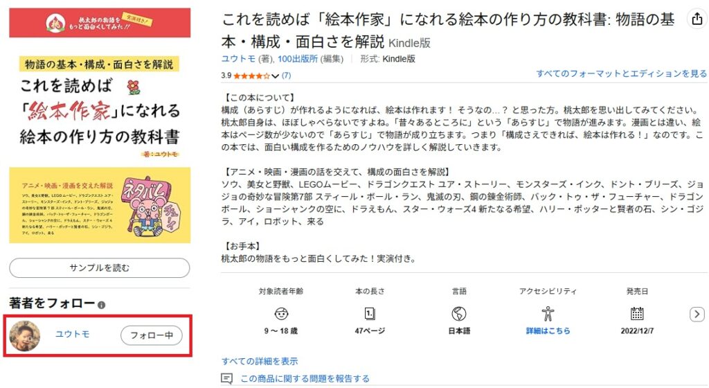 「著者ページ」を作ると、本の販売ページの左下に「著者名」が表示されるようになります。